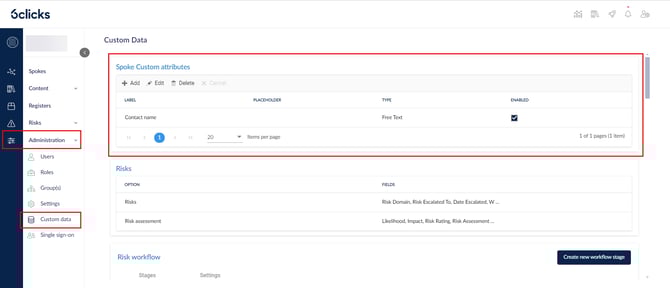 To set up custom fields, go to Administration > Custom data > Spoke Custom attributes.