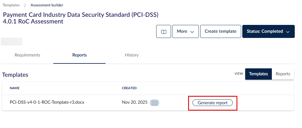 Once the assessment status is set to Completed, you can generate the RoC report in the Reports tab.