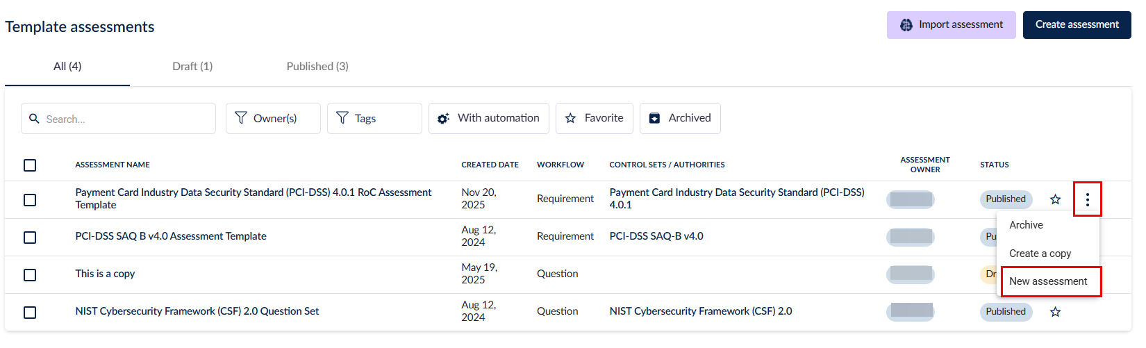 Once the assessment is created, it should come with RoC-equivalent rules and fields. Simply publish and start adding answers.