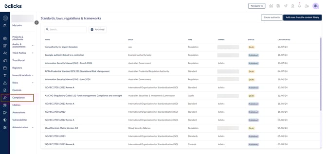 You can add authority documents from the 6clicks Content Library to your tenant, or you can create your own.