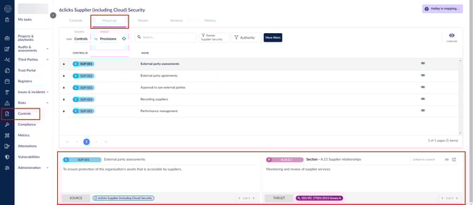 Head to an internal control set within the Controls module (or what you renamed it to) and you should see a Mappings tab. Here, you can map your internal controls to authority documents.