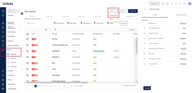 Click on Risks > Registers, then More > Manage fields.
