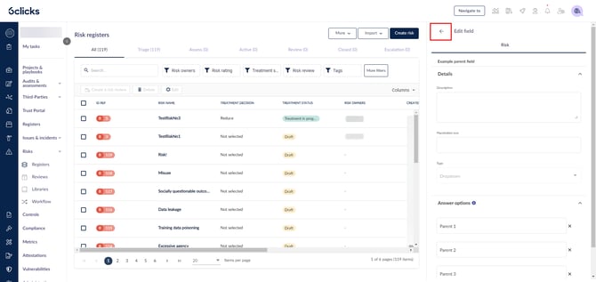 Custom fields for risk registers