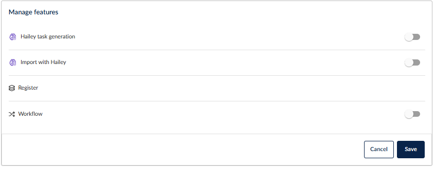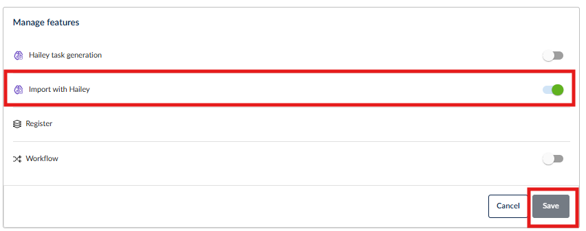 Before using the feature, ensure that Hailey AI Import is enabled for the desired register: