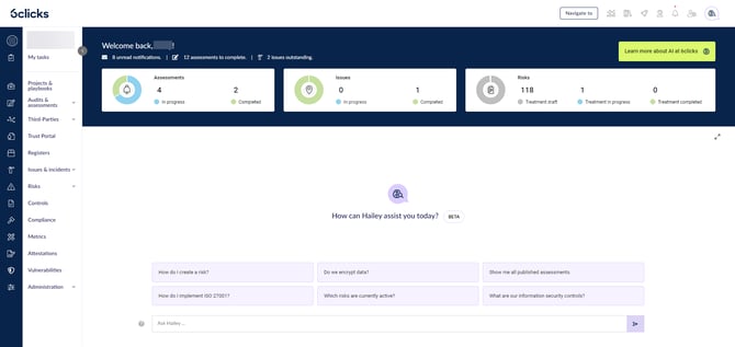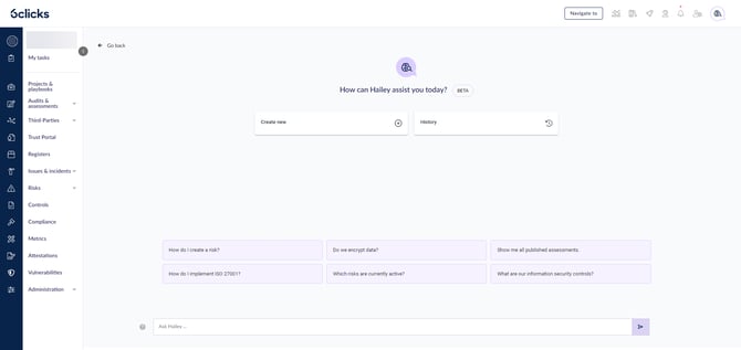 Hailey is an expert assistant to help you navigate 6clicks and get answers to your GRC questions.