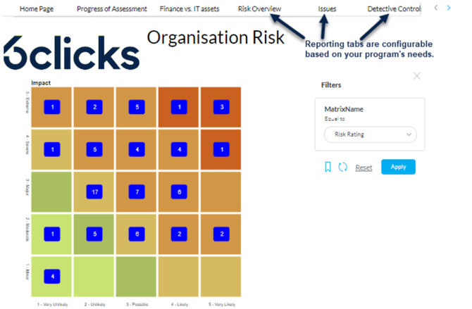 | Template Overview (QBA) - by Risk | View the risk ratings of all assessments created from assessment templates that have risk ratings |