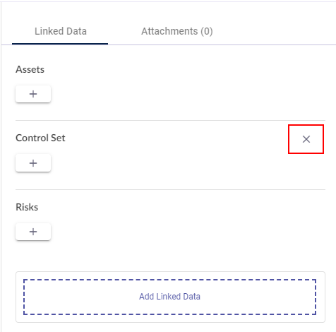 リンク済みデータタブのコントロールセットセクションに戻ると、問題にリンクされたすべてのコントロールが確認できます。各コントロールの横にあるx アイコンをクリックしてリンクを解除します。コントロールをクリックすると、その詳細が読み取り専用ビューで表示されます。