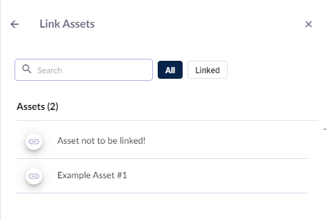 資産をリンクするには、資産列の下にある+ アイコンをクリックします。リンク資産モーダルに入ると、すべての資産が表示されます。すでにリンク済みの資産を確認するには、[リンク済み]オプションに切り替えます。
