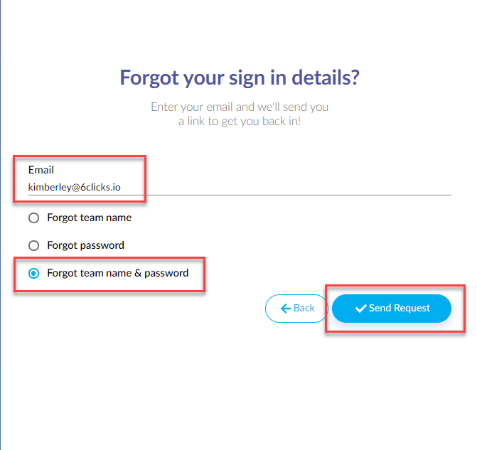 チーム名またはパスワードをお忘れですか?をクリックします。