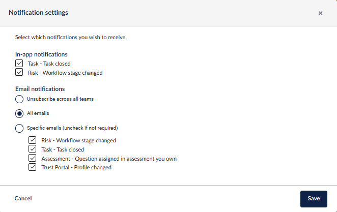 Users who have previously unsubscribed can re-enable email notifications from the same Notification Settings menu.