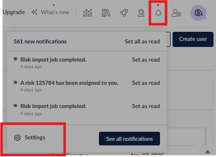 To change the notifications that are being received, click the notification Bell icon at the top of the page, click Settings, then Notification Settings.