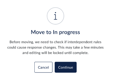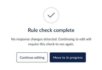After a response change check has finished, you can continue working in your assessment. However, if you make certain edits, the system may need to run the cascading response check again to make sure everything stays accurate.