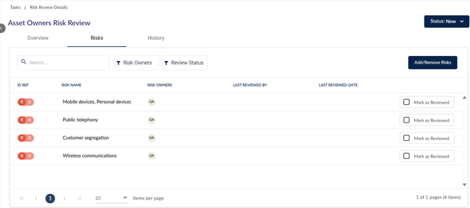 From here, Risk Owners will be able to view all risks within this Review, but only access and review those assigned to them.