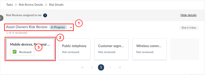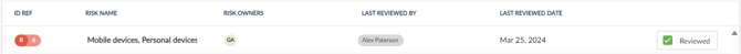 - Use the checkbox to mark the selected risk as Reviewed