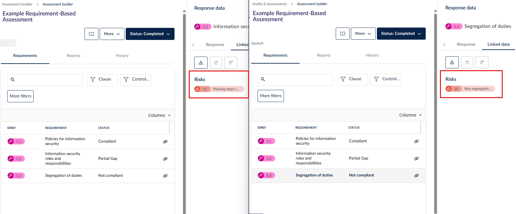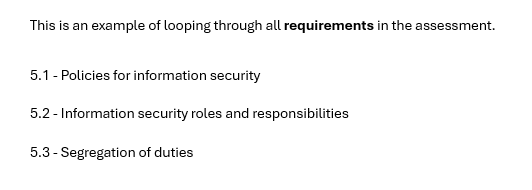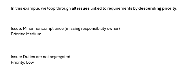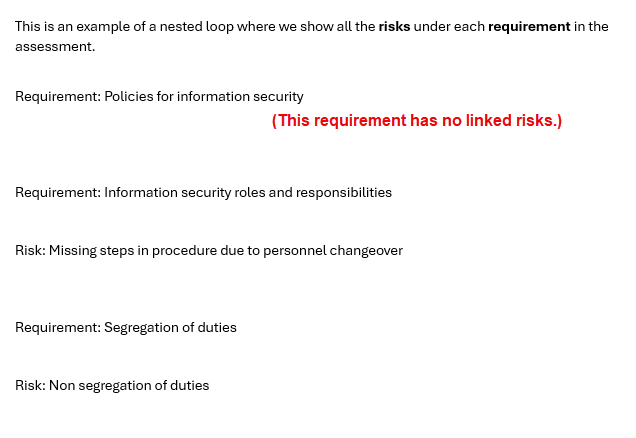 This is an example of a nested loop where we show all the risks under each requirement in the assessment.