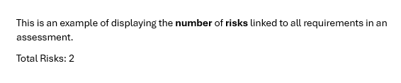 Total Risks: {Assessment.Requirements | count:'Risks'}