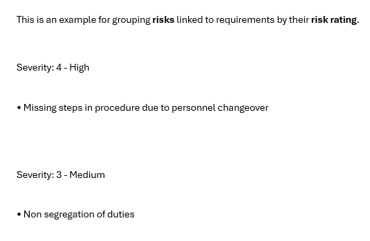 This is an example for grouping risks linked to requirements by their risk rating.