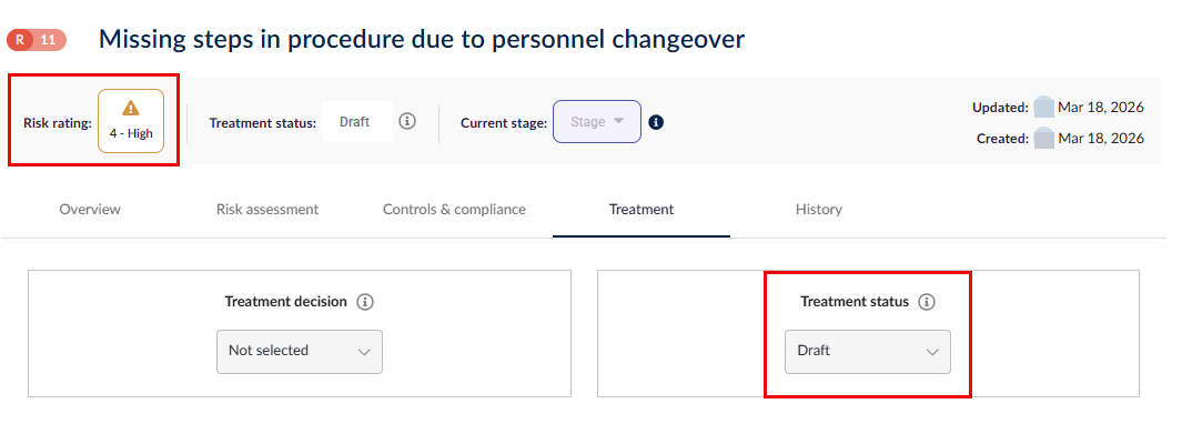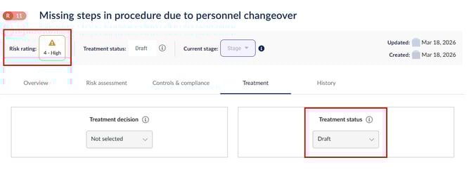| where:"RiskRating == '4 - High' && TreatmentStatus == 'Draft'"}