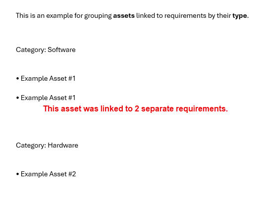 This is an example for grouping assets linked to requirements by their type.