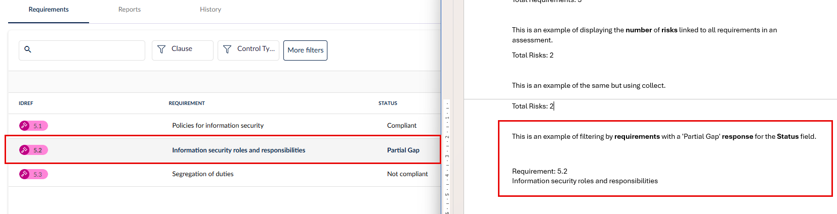 {#Assessment.Requirements | where:"Responses.Status == 'Partial Gap'"}