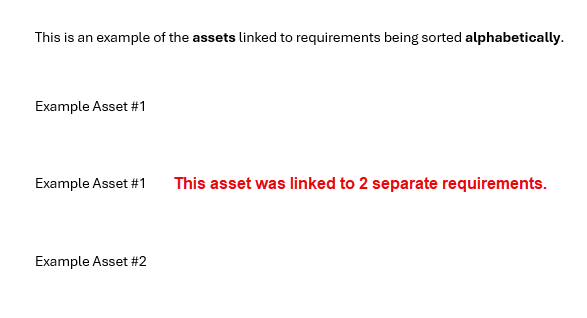 This is an example of the assets linked to requirements being sorted alphabetically.