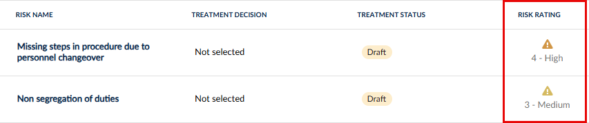 | Risk | Rating | Treatment |