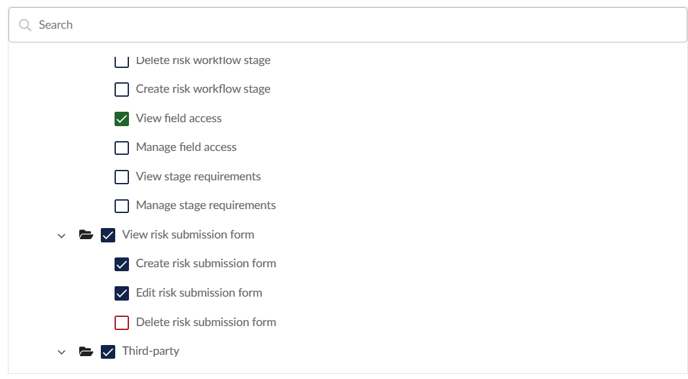 Under the Permissions tab, all 6clicks functionality can be assigned and changed as per the Role requirements.