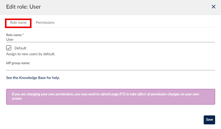 To edit a Role, navigate to Administration, Roles, select an entry, then click Edit. Click Save if you wish to save any changes you make.