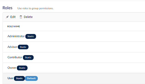 The new role can now be assigned to users. If you wish to make this role the default role for new users, select it, click Edit and then check the default box as noted in the Edit a role section above.